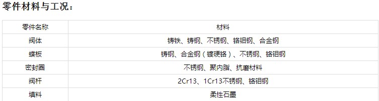 ⑤蝶板密封面采用堆焊鈷基硬質(zhì)合金,密封面耐磨損,使用壽命長