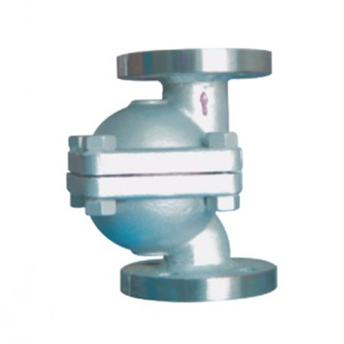 立式自由浮球式蒸汽疏水閥的結(jié)構(gòu)簡單,內(nèi)部只有一個(gè)精細(xì)研磨的不銹鋼空心浮球,既是浮子又是啟閉件,無易損零件,使用壽命很長。裝置剛起動(dòng)時(shí),管道內(nèi)出現(xiàn)空氣和低溫冷凝水,雙金屬自動(dòng)排空氣元件把浮球推離閥座,閥門打開,排除不凝結(jié)氣體,低溫冷凝水流進(jìn)疏水閥,浮球上升,凝結(jié)水迅速排放。裝置很快提升溫度,管道內(nèi)溫度上升到飽和溫度之前,雙金屬自動(dòng)排空氣元件感溫變型伸直;蒸汽疏水閥進(jìn)入正常運(yùn)行狀況,浮球隨液位升降調(diào)節(jié)閥孔流量;當(dāng)凝結(jié)水停止進(jìn)入時(shí),浮球隨介質(zhì)流向逼近閥座,關(guān)閉閥門。立式自由浮球式蒸汽疏水閥的閥座總處于液位以下,形成水封,無蒸汽泄漏。