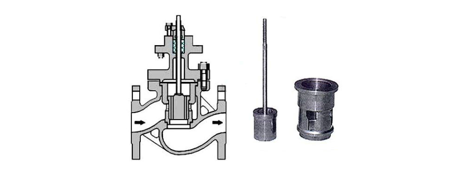 5,由于閥塞底部為平面,在產生氣蝕時,氣泡破裂產生的沖擊波作用在閥塞下面的窨內,沖擊能量沒有作用在閥塞上,而是被介質自身吸收。而單、雙座閥沖擊能量卻直接作用在其閥芯頭部,因此套筒閥氣蝕的破壞比單、雙座閥小。另一方面,套筒密封面與節(jié)流面(窗口)分開,介質高速流動過密封而后沖刷也大為減少,所以套筒閥的使用壽命比單、雙座閥長。